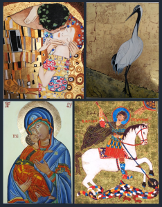 Dans notre atelier nous utilisons la peinture à la tempera pour « écrire » des icônes (c’est le terme employé pour peindre les icônes),.. nous ajoutons alors la pose de l’or, très utilisée pour les icônes; nous réalisons aussi avec cette techniques des copies de miniatures, d’estampes, de fresques, et de tableaux anciens.
