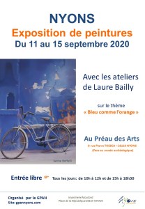 Exposition collective du GPAN Publié le 6 septembre 20206 septembre 2020 par FL Au Préau des Arts du 11 au 15 septembre Les ateliers de Laure BAILLY exposent leurs œuvres sur le thème « Bleu comme l’orange« Exposition répartie sur les deux salles. Techniques variées: Huiles – Acrylique – Aquarelles – Pastels Horaires: 10h à 12h et de 15h à 18h30 Le port du masque est obligatoire Pour des raisons sanitaires, il n’y aura pas de vernissage cette année. Partager : Partager sur Facebook(ouvre dans une nouvelle fenêtre) Facebook Partager sur X(ouvre dans une nouvelle fenêtre) X Partager sur Pinterest(ouvre dans une nouvelle fenêtre) Pinterest Envoyer un lien par e-mail à un ami(ouvre dans une nouvelle fenêtre) E-mail Sur le même thème