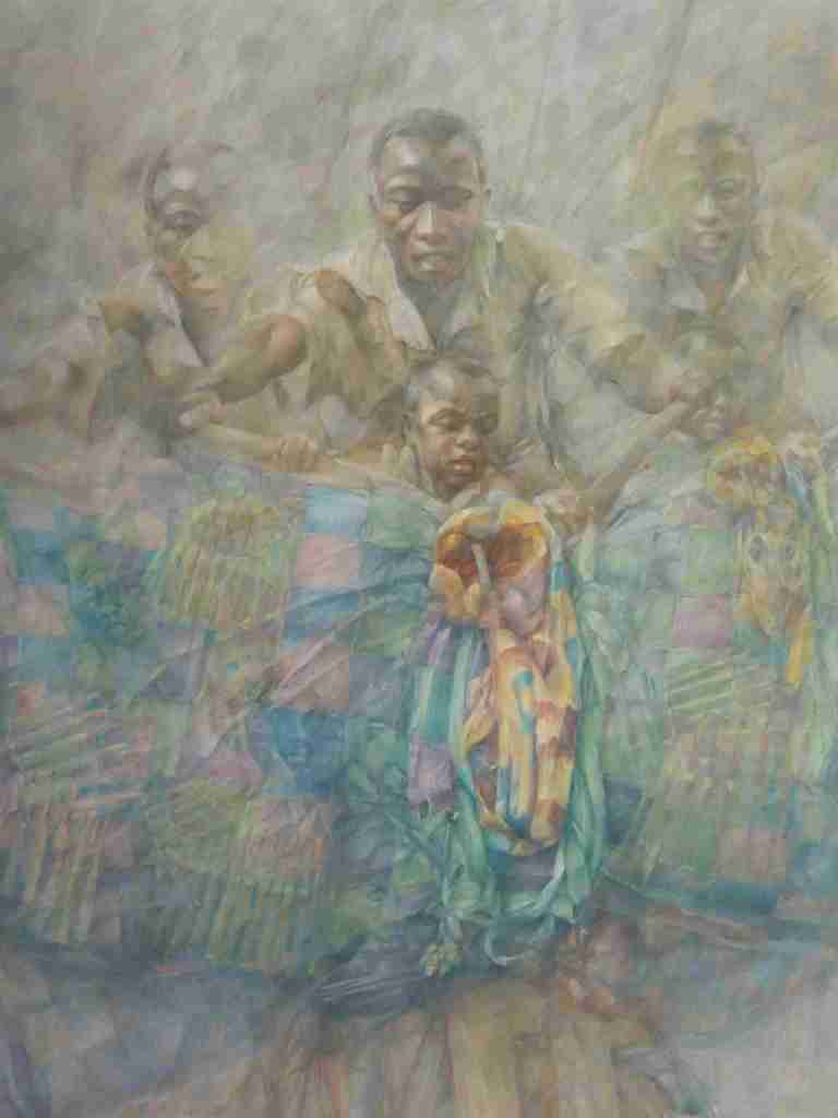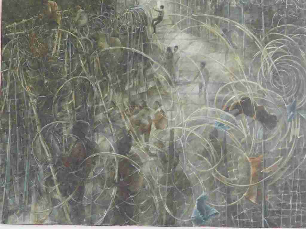 Cela ne se sait peut-être pas beaucoup, mais Nyons est une ville de peinture. Le Préau des Arts y tient une grande place, en présentant chaque été des pléïades d’artistes dont certains surpassent ce qui se montre souvent dans les diverses galeries de nos grandes villes. Ces artistes, modestes pour la plupart, se contentent d’exposer leurs œuvres de semaine en semaine. En ce moment, par exemple, l’artiste d’origine belge, mais vivant depuis très longtemps dans la région, Michèle Lepeer, qui peint depuis fort longtemps (cinquante ans dit-elle) et a réussi au cours de ces années à montrer son travail dans des lieux de culture importants en Belgique (à Liège) et au Luxembourg. Dès le début, peintre du mouvement (elle a portraituré de grands tennismen en action, Mats Willander possèderait même une de ses œuvres à ce que l’on dit !), elle s’est vite orientée vers la mise en scène des drames de notre histoire. Quand les humains doivent fuir. Fuir à cause des bombes (Tchétchénie), à cause des massacres (à l’est du Congo, vers Goma), à cause des oppressions (femmes afghanes) et demain sans doute à cause des sécheresses… Son art est fascinant. De loin, et si l’on passe trop vite devant ses toiles, on risque de ne retenir que des camaïeux de bleus, des allures de faïence et des teintes délicates, mais lorsqu’on se rapproche, on voit, et ce que l’on voit, ce sont des visages, des bras noueux, des corps qui transportent des marchandises vers un ailleurs inconnu. Michèle Lepeer peint les migrants, qu’ils soient occasionnels ou de tout temps (comme les roms). Elle est profondément marquée par le souvenir de la Shoah. Ces bleus que l’on voit chez elle, à l’instar des bleus de Picasso de la période du même nom, sont tristes, ils disent toute la misère du monde. En plus, l’artiste ne se contente pas des effets, elle se penche aussi sur les causes, tous ces tyrans qui ont causé les drames de notre temps, de Hitler à Staline, de Hussein à Poutine. Elle réalise alors des objets étonnants, comme des boules de plexiglas renfermant les portraits en papier froissé de ces divinités maléfiques, ou des tubes transparents qui contiennent des rubans sur lesquels leurs noms sont inscrits. Une toile étonnante où l’on devine en ombre les figures des dictateurs est carrément lacérée, déchirée pour montrer l’étendue de ce qu’ils nous font subir de déchirement, ces effrayants leaders. L’art de Michèle Lepeer est minutieux, devant mon ébahissement face à la construction de ses tableaux, elle me dit qu’elle n’a pas de plan préconçu, et que, pour tous, elle part du coin supérieur gauche et avance lentement, méticuleusement, couvrant patiemment la toile d’un pavage coloré où l’on finit par découvrir en filigrane les fantômes qui parcourent à la fois notre monde et notre inconscient.