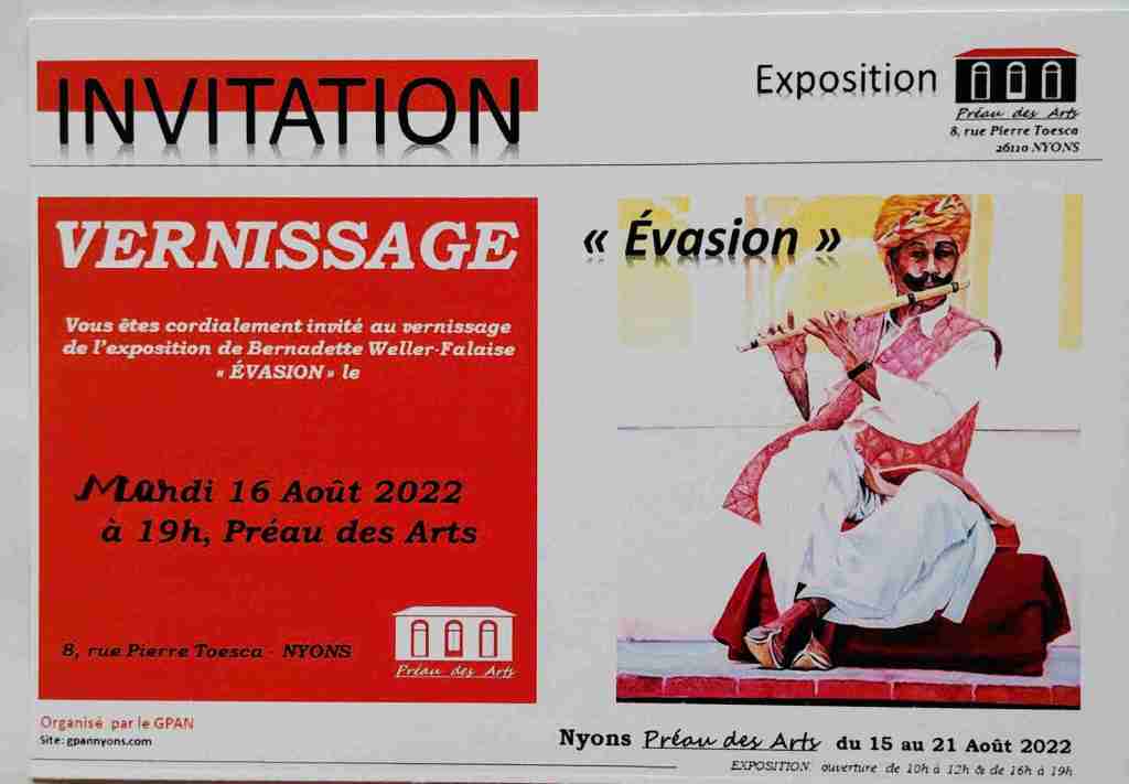 Exposition du Lundi 15 Août au 21 Août 2022