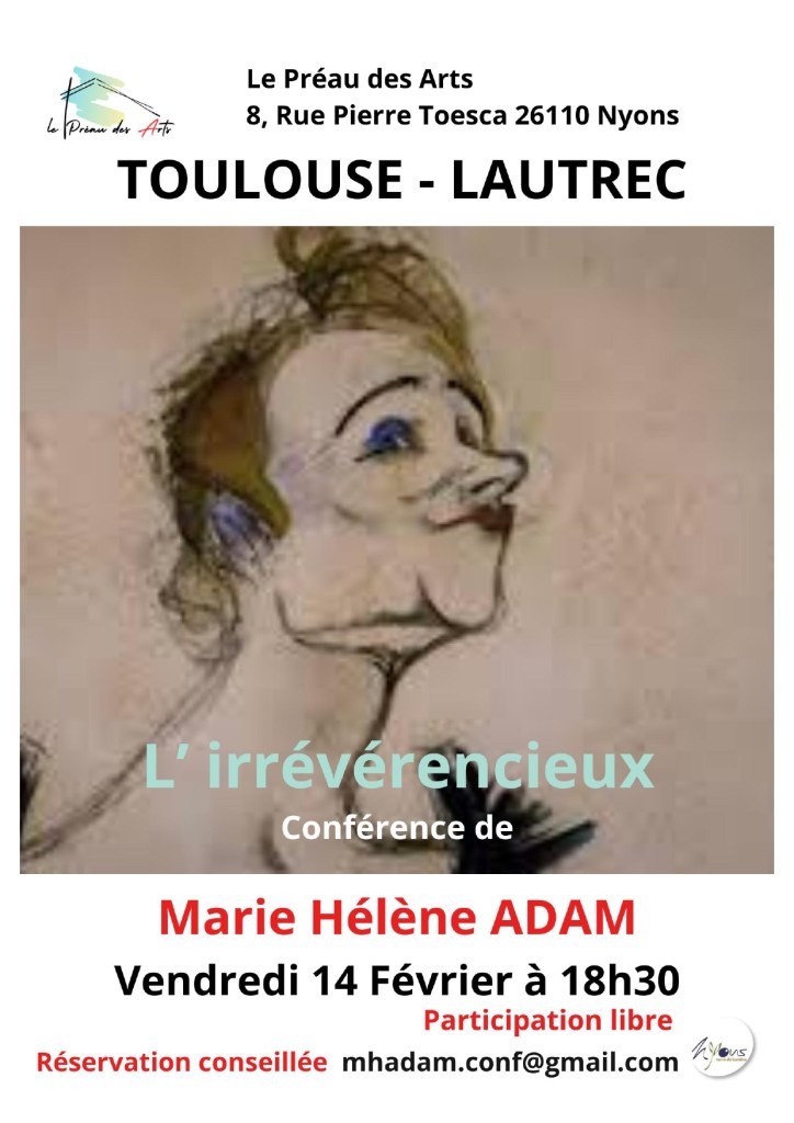 Marie-Hélène Adam07 83 78 77 42 Afin de pouvoir gérer vos présences à la conférence, nous demandons à nos adhérents de s’inscrire préalablement auprès de Marie- Hélène ADAM sur sa messagerie vocale ou par mail à: mhadam.conf@gmail.com.En vous remerciant et en vous espérant nombreux, nous vous disons à très bientôt !Pour le bureau du Préau des ARTS.