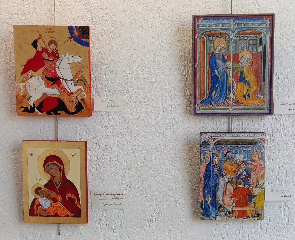 Michel LEVI et ses élèves nous ont fait découvrir des reproductions d’œuvres délicates et précieuses méticuleusement réalisées, mettant en l’honneur la pratique des techniques très anciennes.