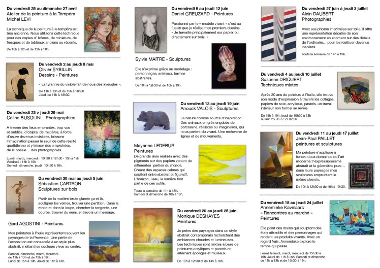 Vous trouverez après les affiches, le dépliant décrivant l’ensemble des expositions de la saison, téléchargeable en format PDF.