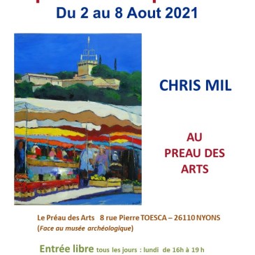 Cette adepte des paysages et des scènes de la vie quotidienne en terres provençales nous propose une superbe exposition de ses huiles aux couleurs chatoyantes. Les visiteurs découvriront également les carnets de voyage et des dessins originaux de l’artiste. Vernissage le mardi 03 août à 18h30