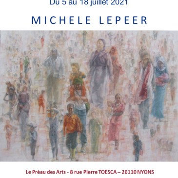 Du 5 au 18 juillet 2021 Michèle Lepeer Cette artiste issue des Beaux-Arts de Bruxelles nous propose une étonnante balade sur le thème : Invitation à croiser des regards. Je cherche à représenter l’Humanité en mouvement dans un espace mouvant. Une toile est le résultat d’un cheminement qui passe par différentes techniques picturales. Chacun peut s’y … Lire la suite Exposition au Préau des Arts