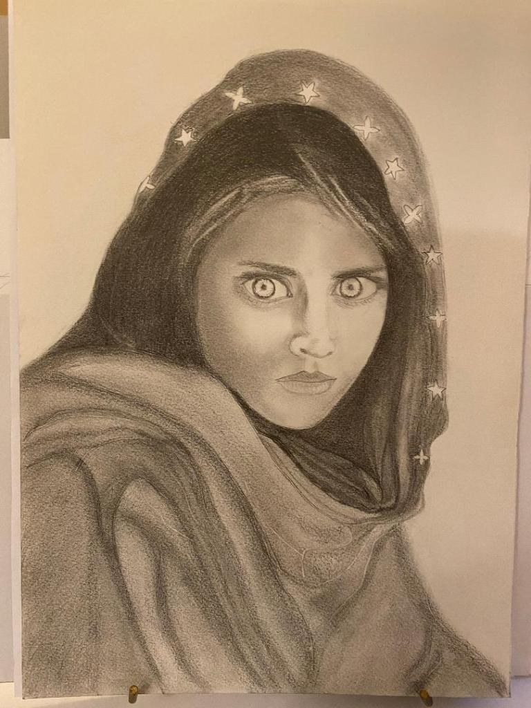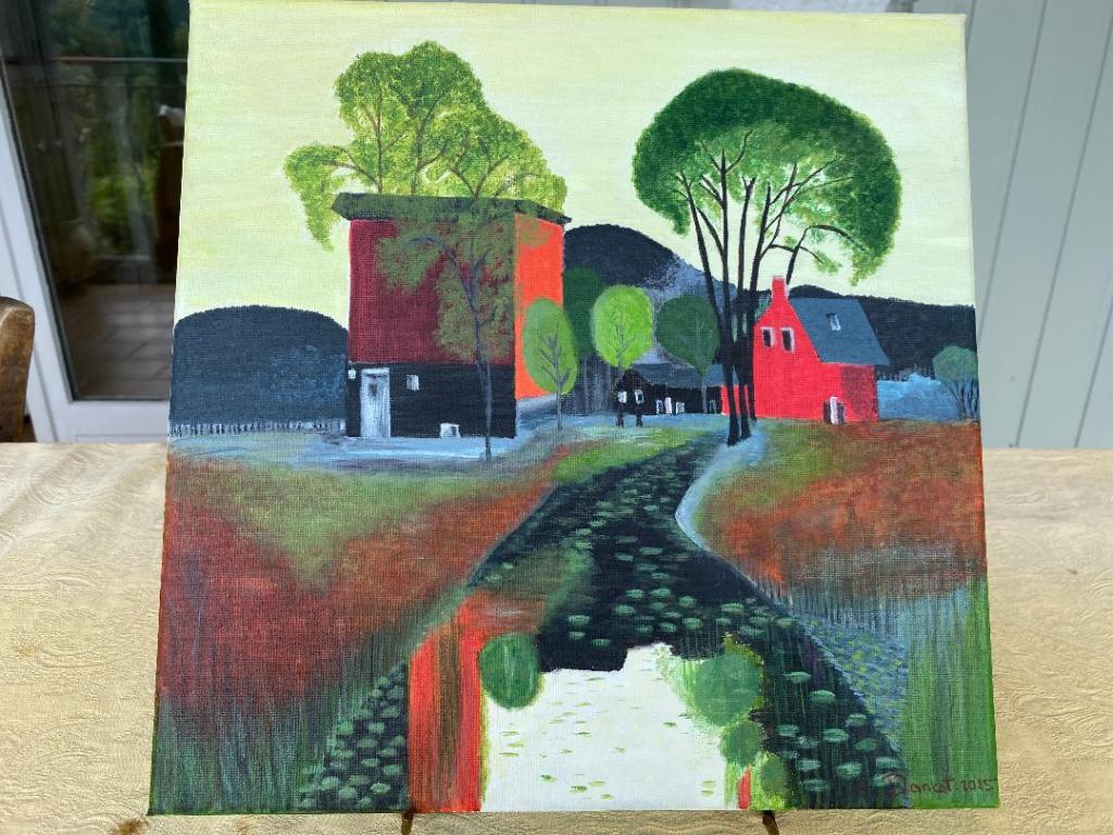 Elisabeth Dancet G SeuratElisabeth Dancet V KandinskyElisabeth Dancet L’Afghane : portrait au crayon d’après la célèbre photo de Steve McCurryElisabeth Dancet Le village où la rivière se rétrécit » : tableau à l’acrylique, d’après le peintre contemporain suédois Stig Eklund